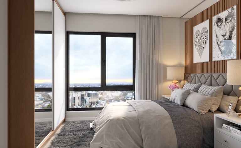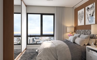 Praça Madri, Lofts e apartamentos de 1 e 2 dormitórios com amplas aberturas.